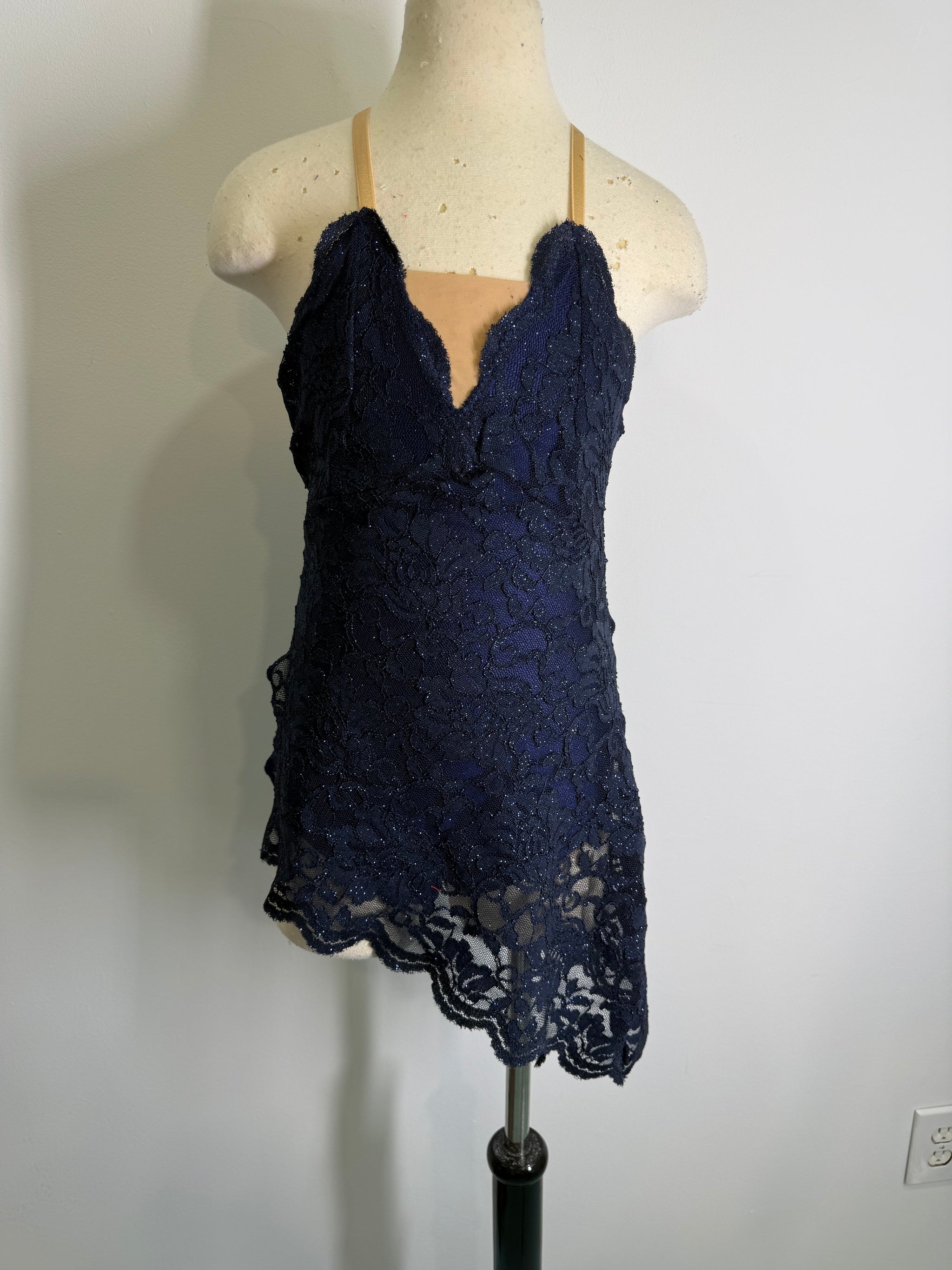 Custom sparkly stretch lace dance costume dress with lined leotard underneath. No Headpeice included