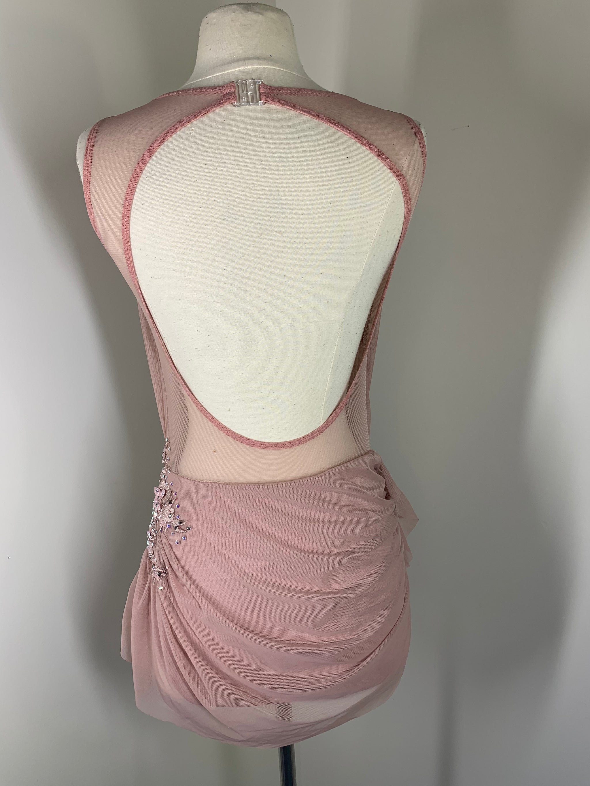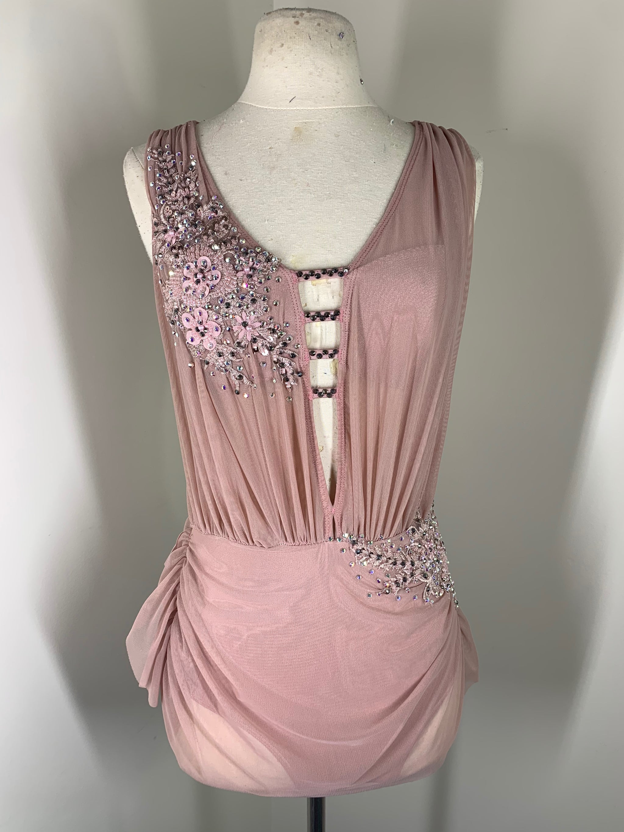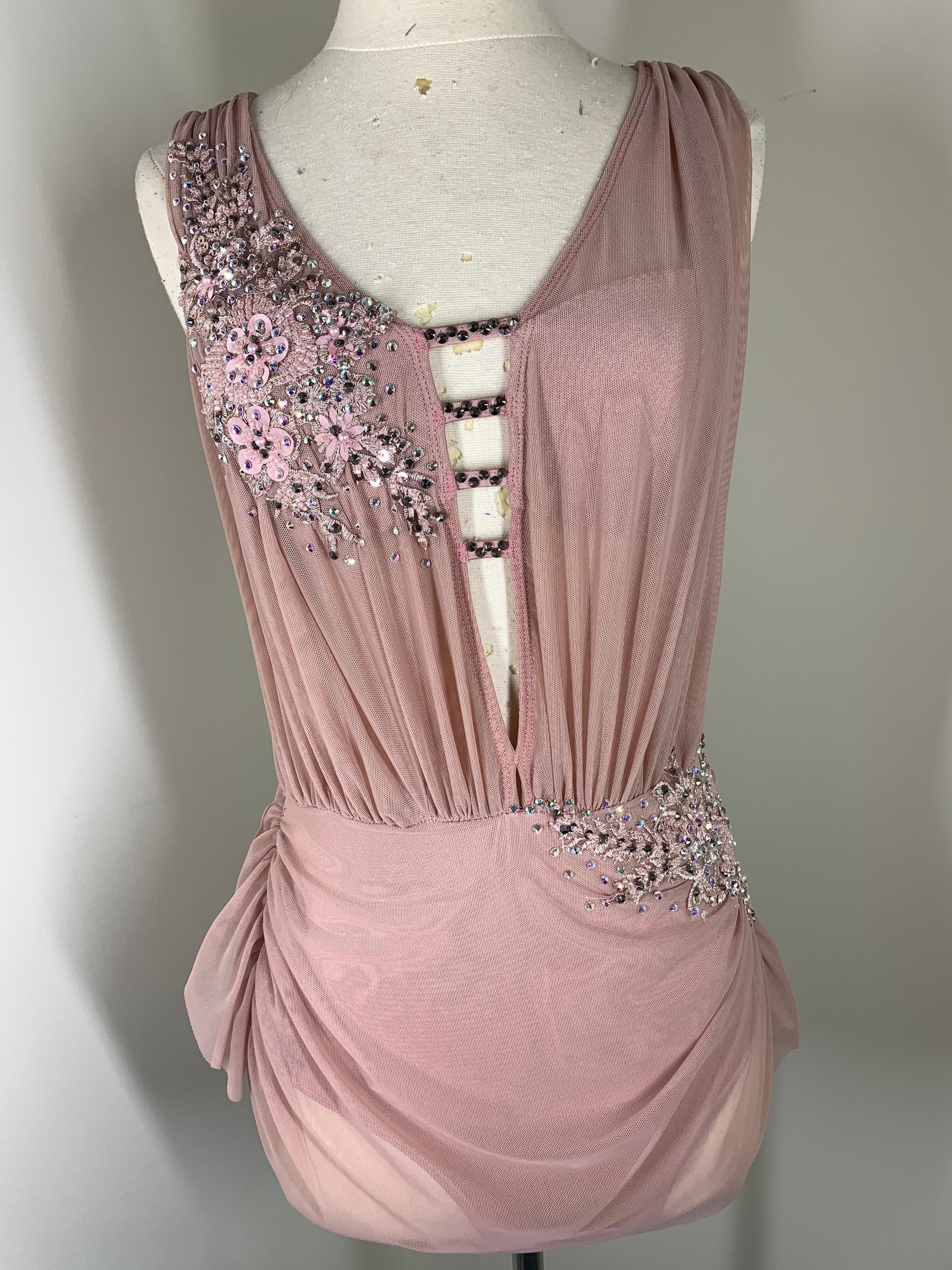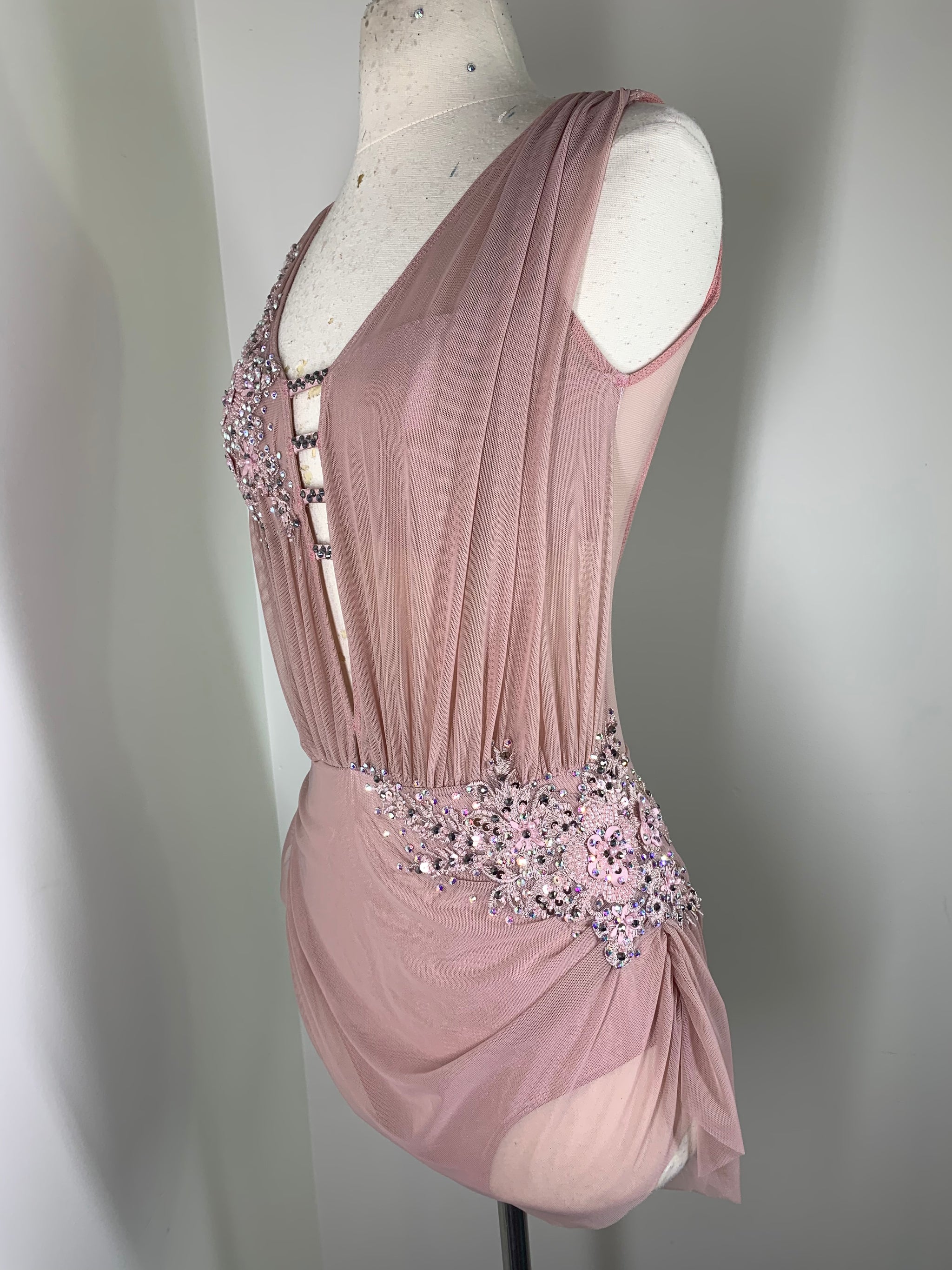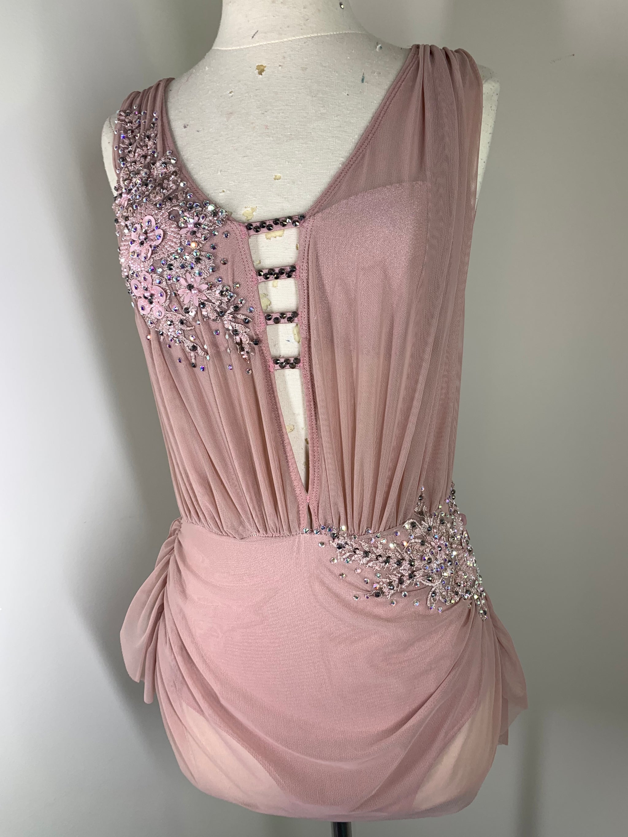 Dusty pink lyrical dance costume with appliques, crystal ab and hematite stones. fully lined.