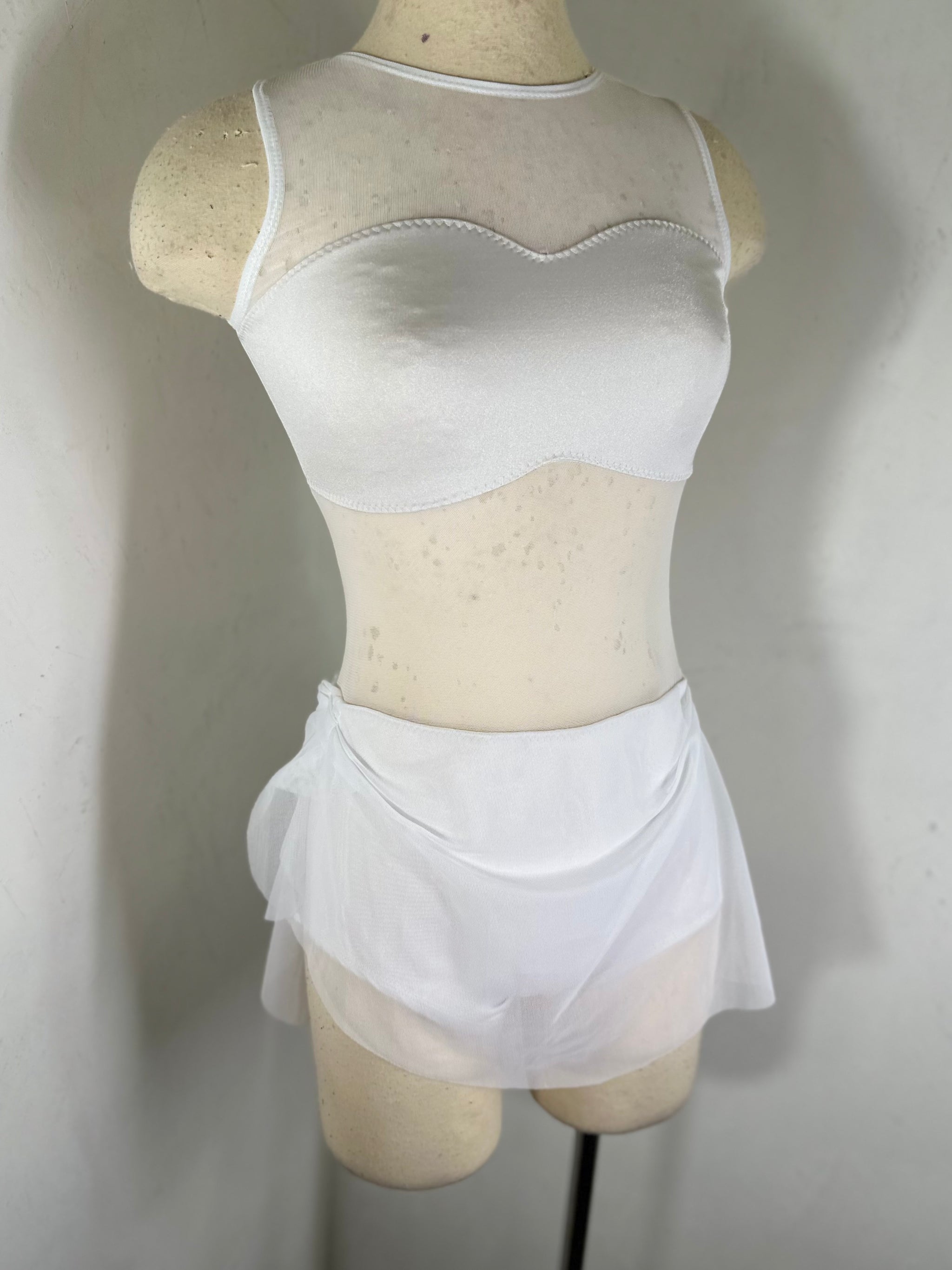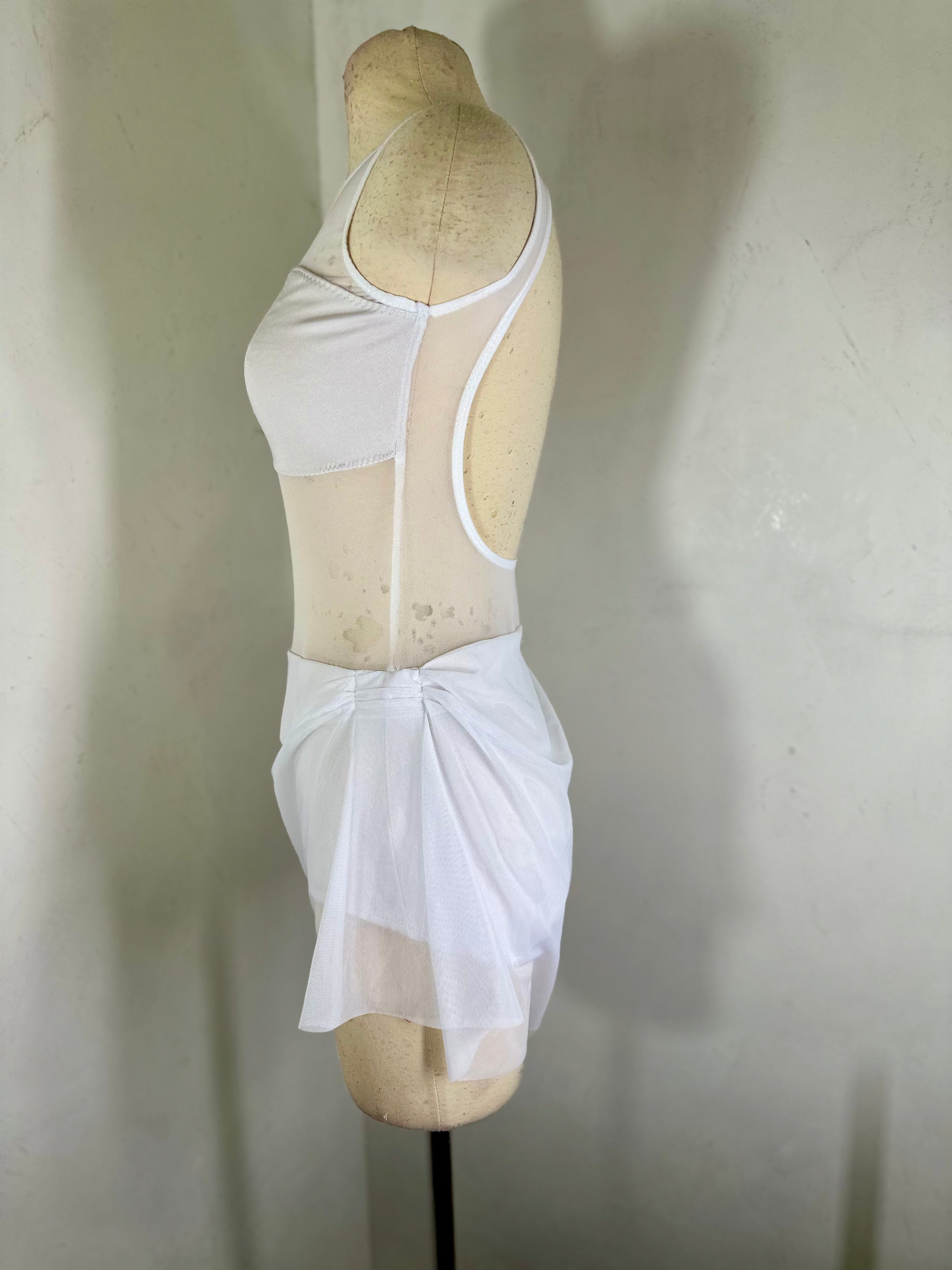 Classic Mesh skirted leo, lyrical dance costume with a draped skirt. lined leotard underneath.