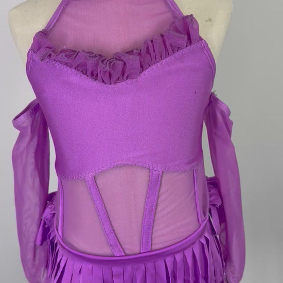 Jazz or contemporary dance costume . Pretty plain lined base with shirred mesh bodice and assymetrical front skirt which can be made in mesh or spandex as well as two sets of back straps.