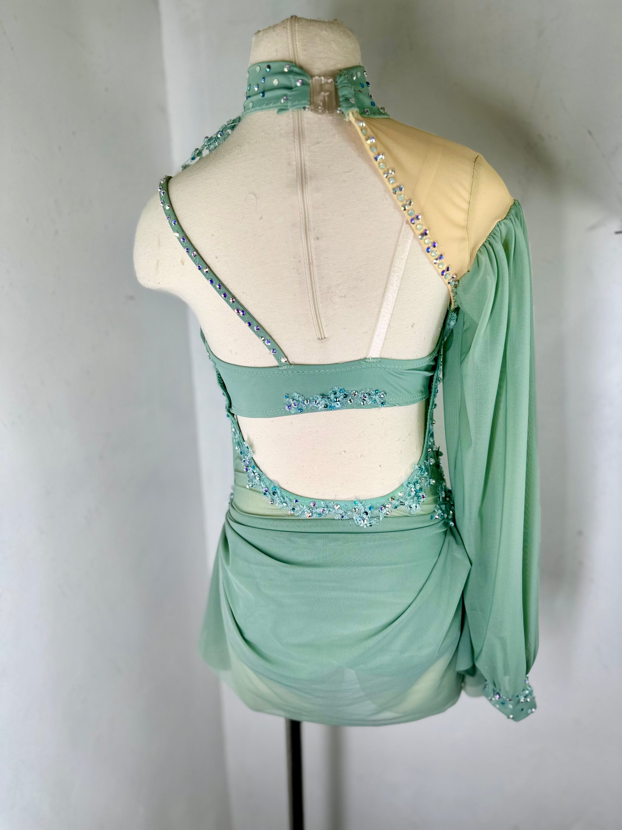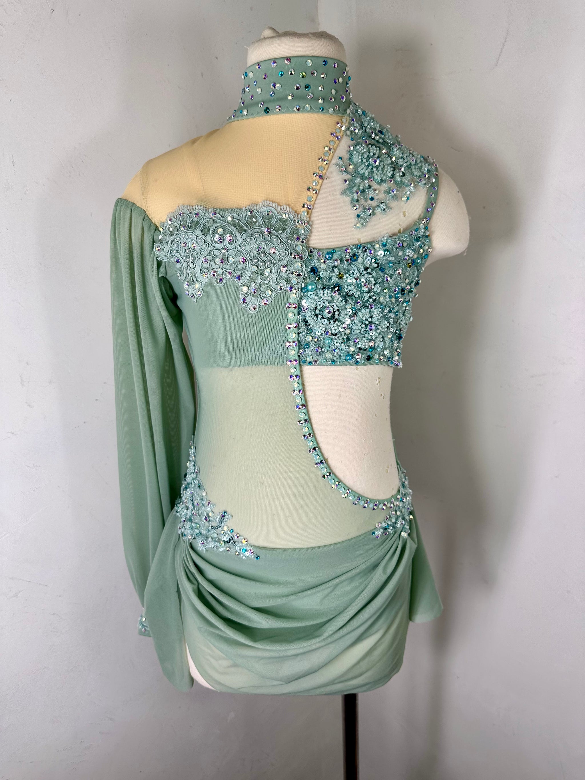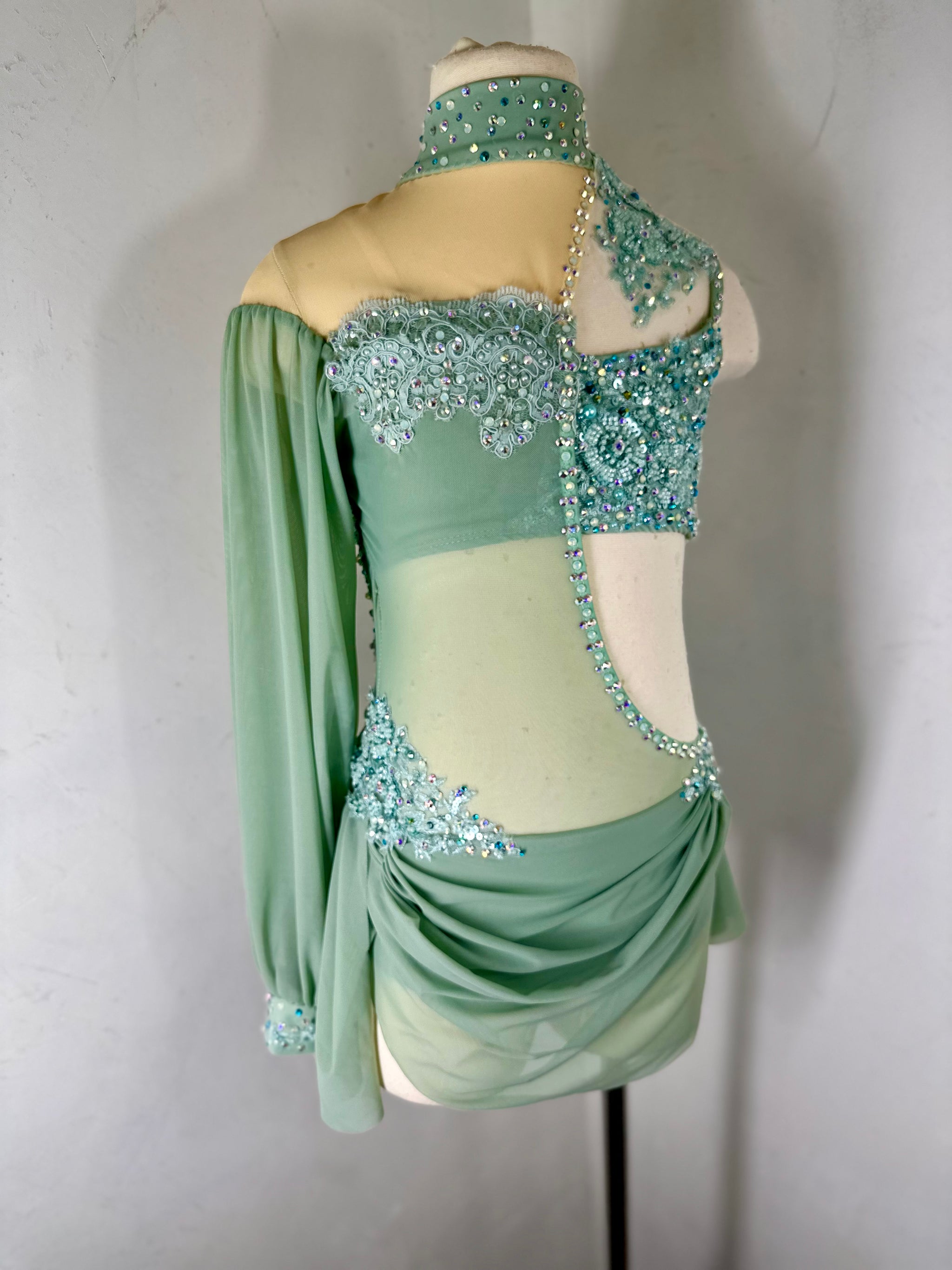 Sage green beaded applique dance costume with preciosa or swarovski crystal ab rhinestones