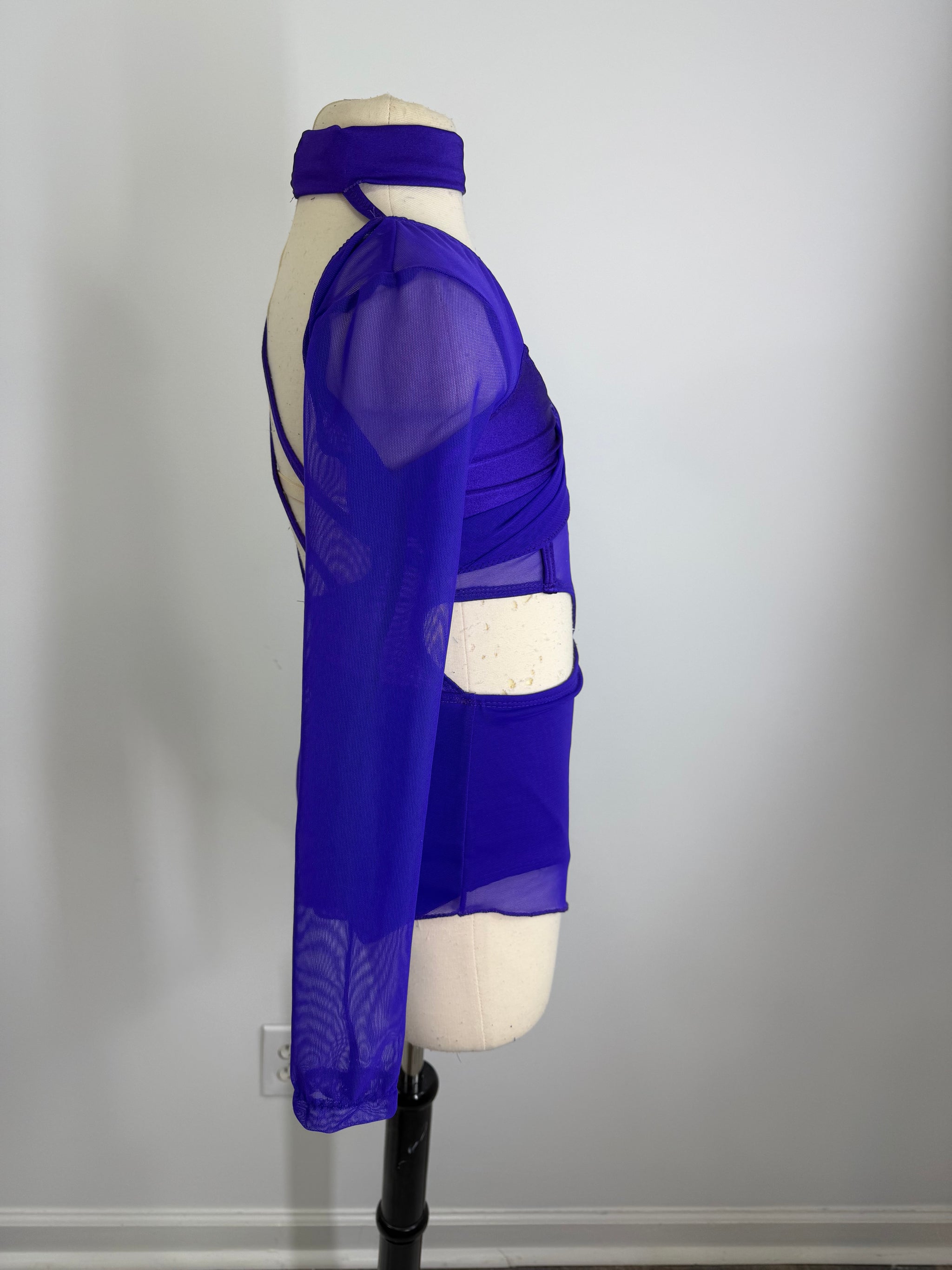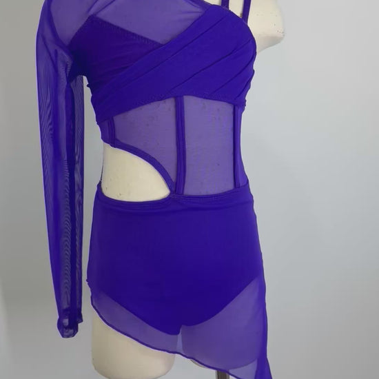 Jazz or contemporary dance costume . Pretty plain lined base with shirred mesh bodice and assymetrical front skirt which can be made in mesh or spandex as well as two sets of back straps.