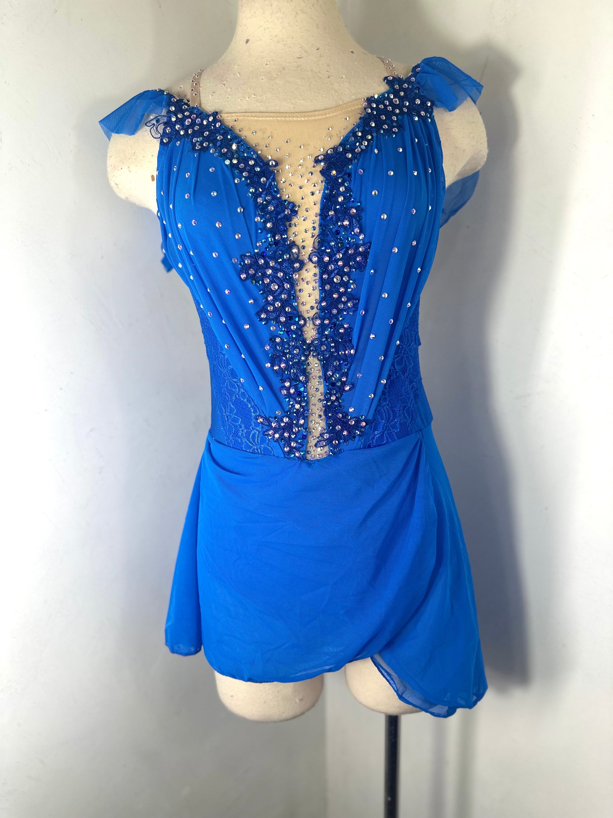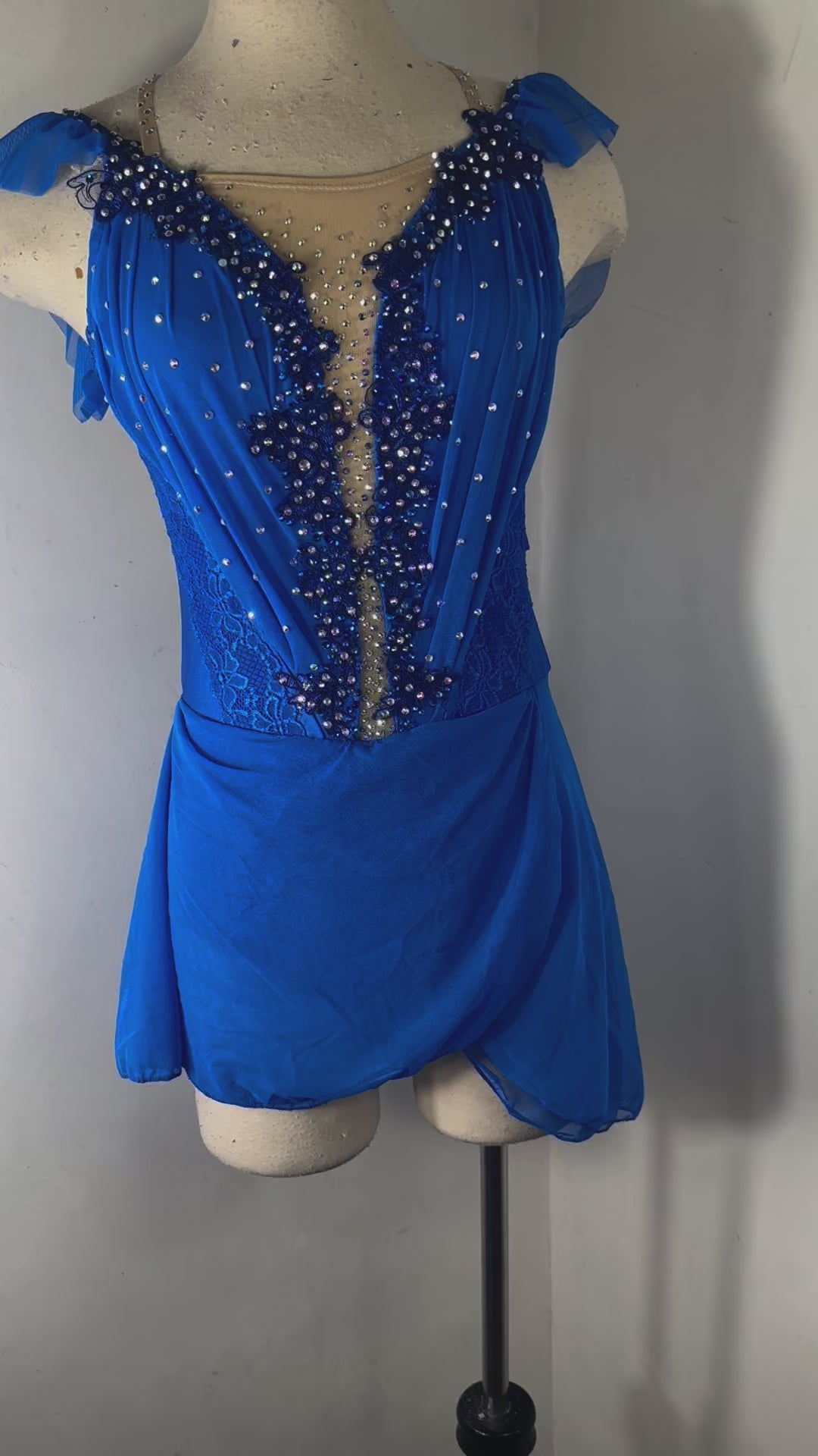Sapphire Blue custom figure skating dress with appliques and crystal ab and royal rhinestones This figure skating dress is made custom to your measurements. It is fully lined with a double layer skirt.