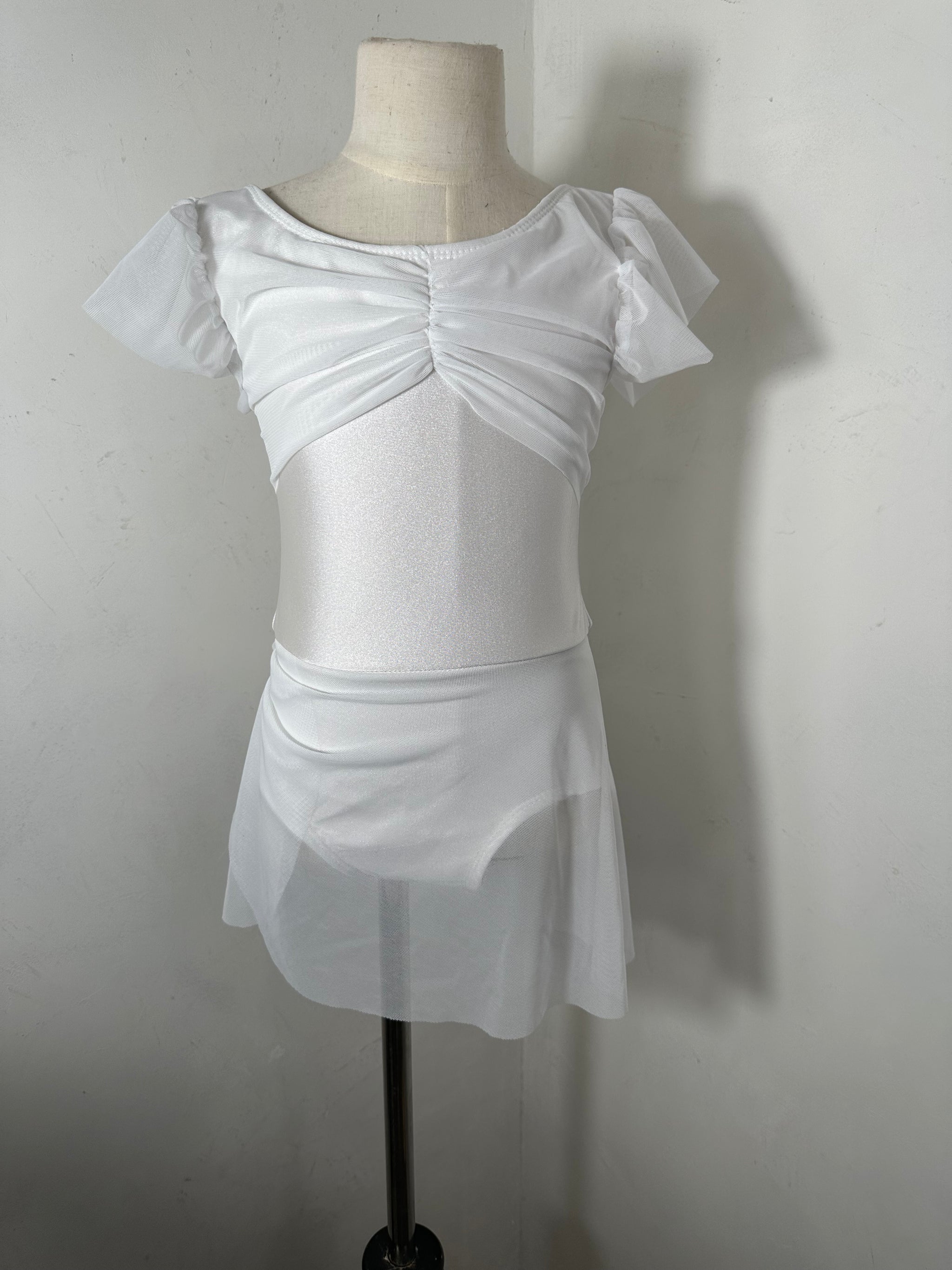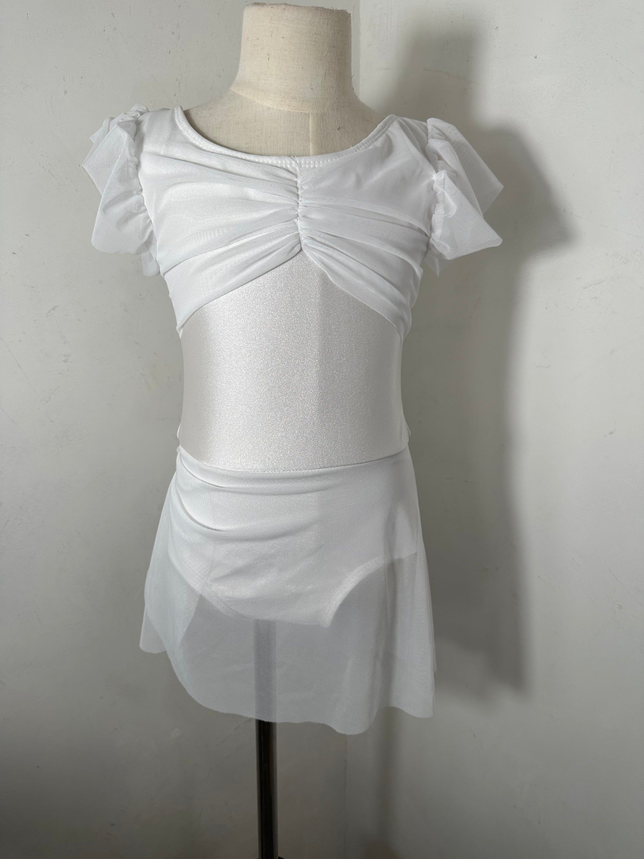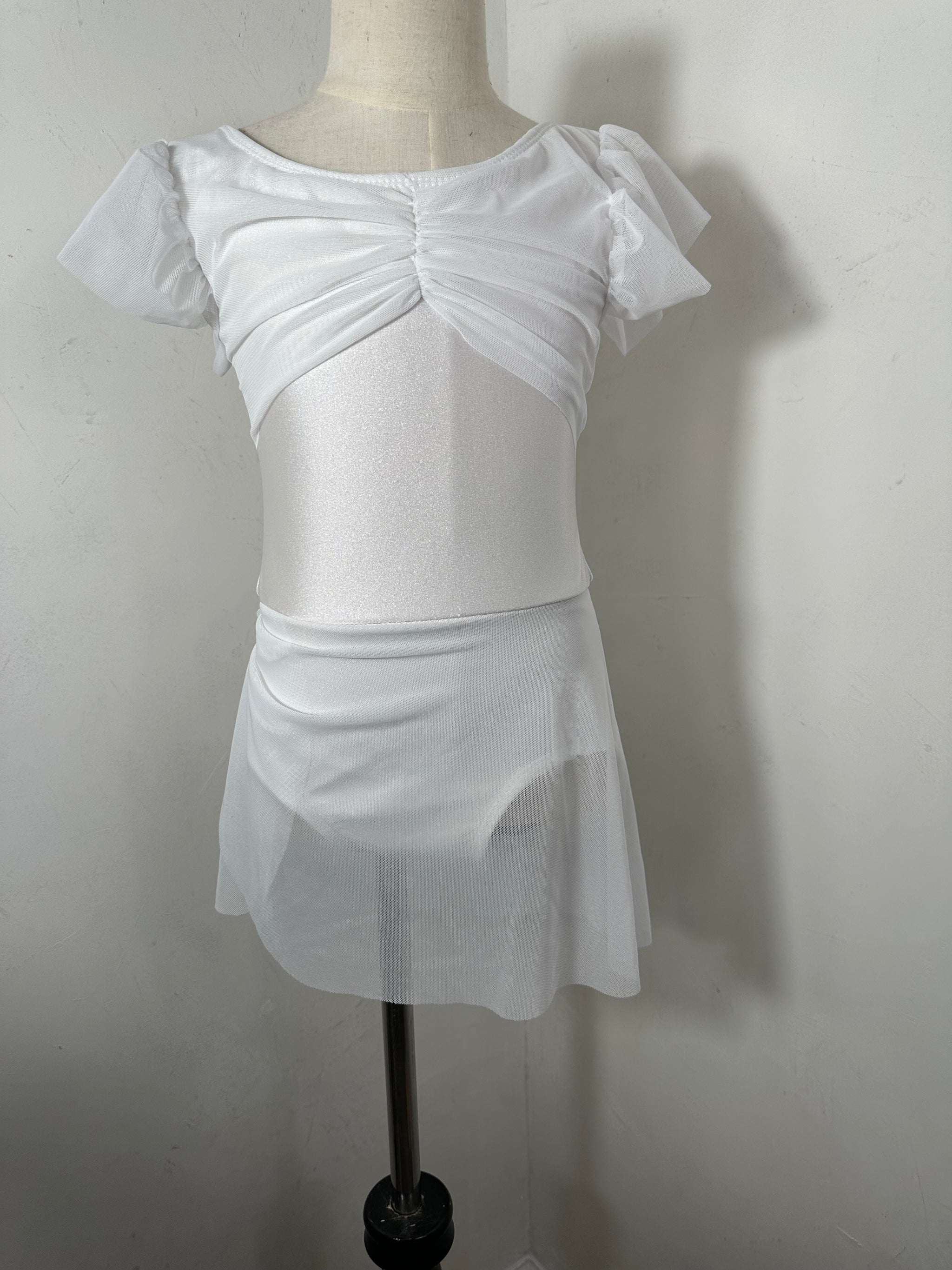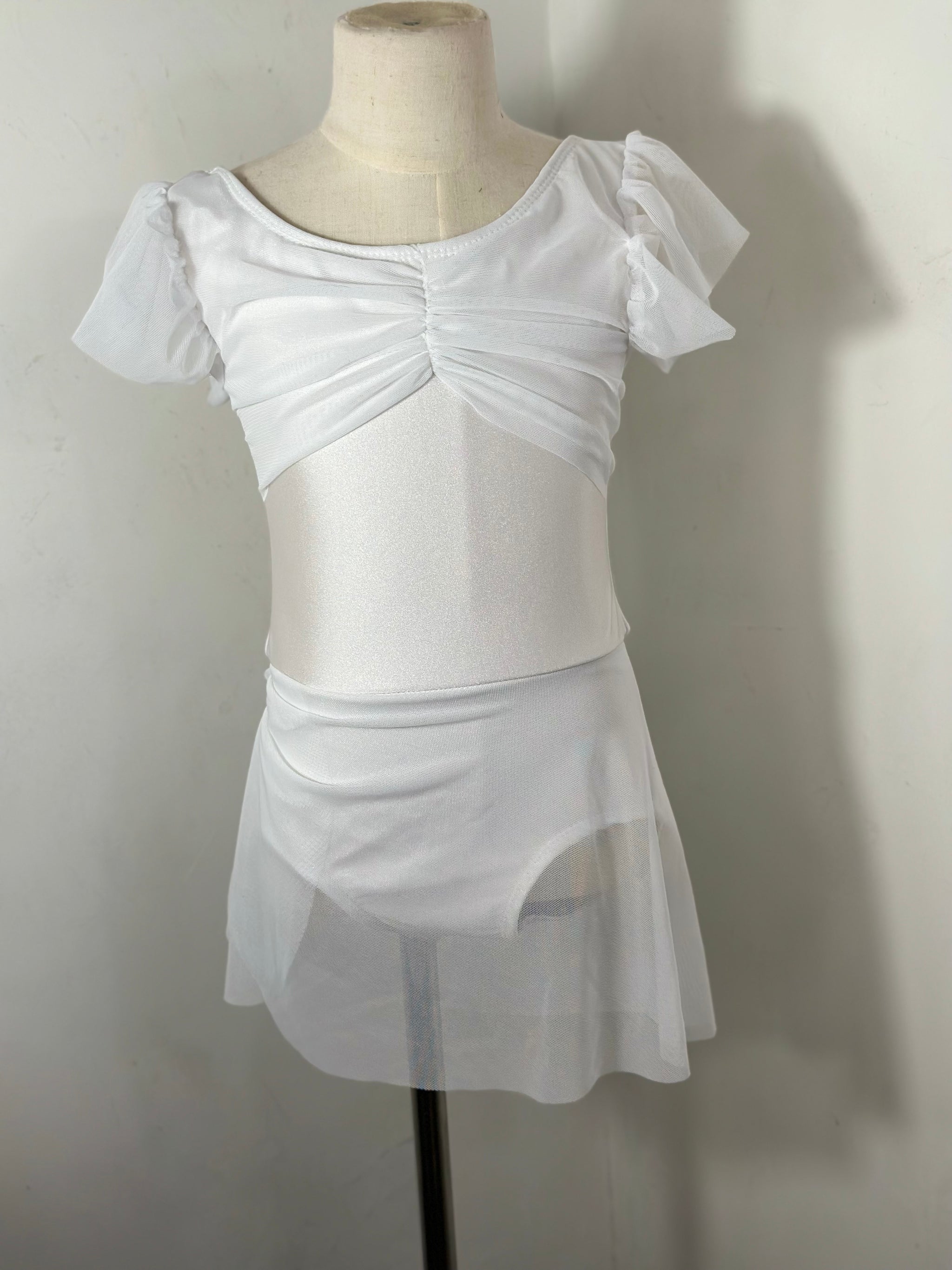 This mesh solid dance dress has a fully lined leotard underneath.