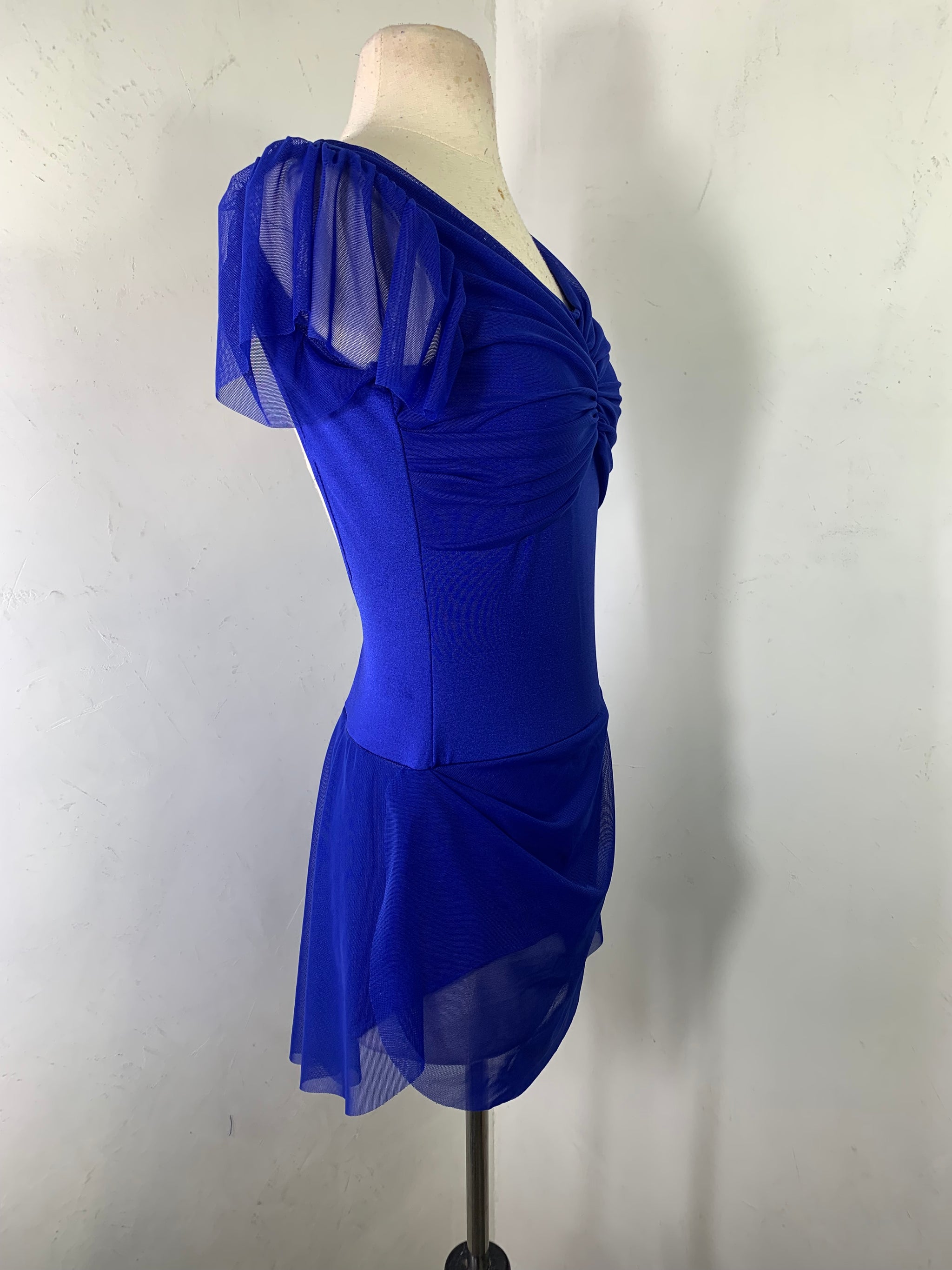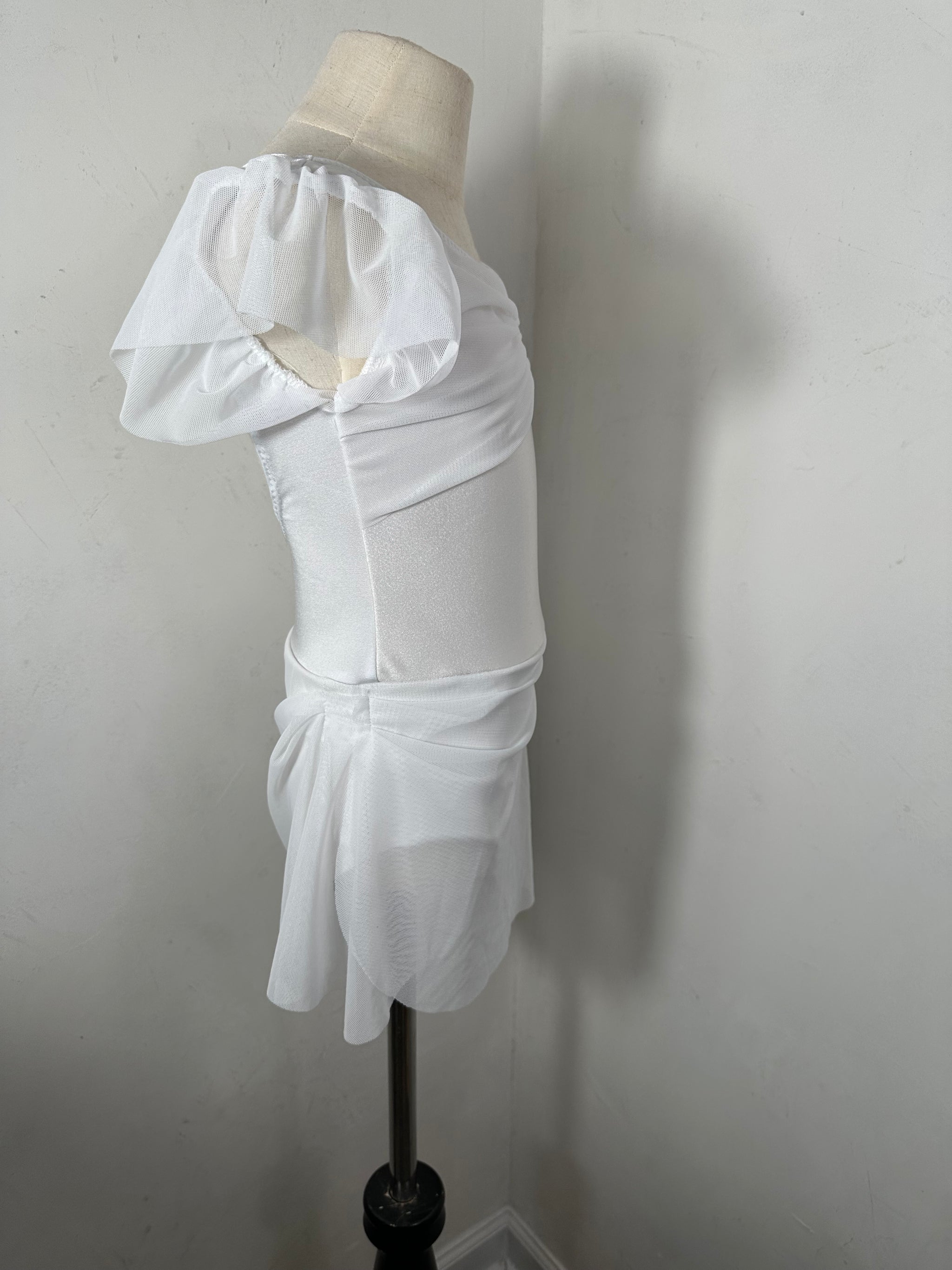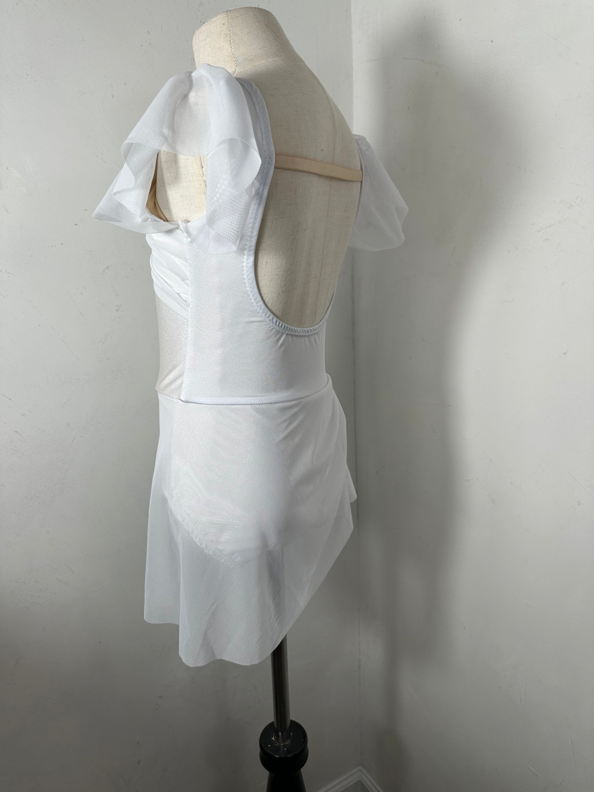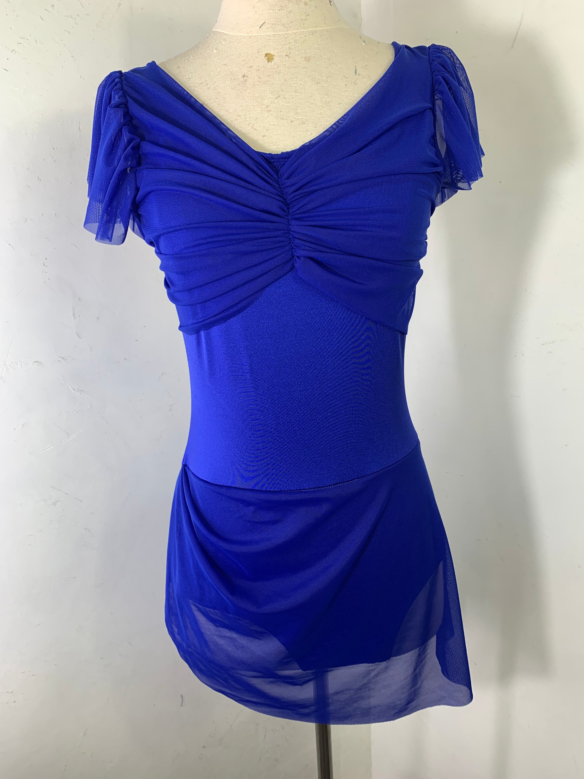 This mesh solid dance dress has a fully lined leotard underneath.